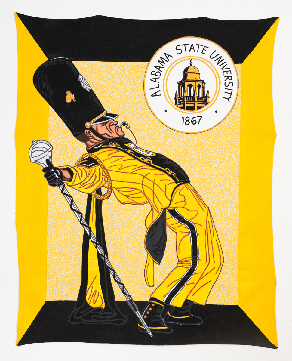 - Keith Duncan Alabama State University Drum Major 2024 62 x 49 inches Acrylic, marker and fabric on unstretched canvas © Keith Duncan. Courtesy of the artist and Fort Gansevoort, New York