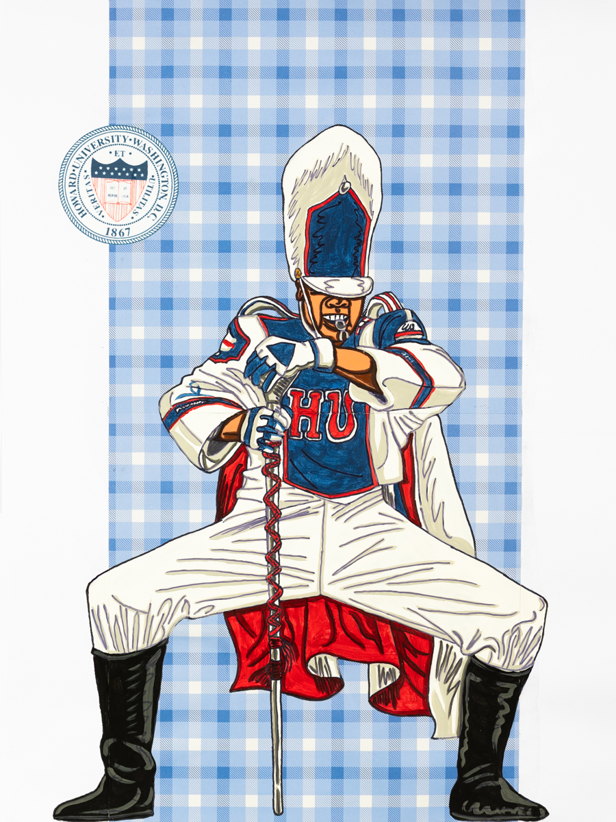 - Keith Duncan Howard University Drum Major 2023 Acrylic, marker and patterned paper on paper 24 x 18 inches © Keith Duncan. Courtesy of the artist and Fort Gansevoort, New York